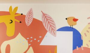 Questi aspetti hanno determinato le scelte principali, come i colori pastello, le forme astratte e un linguaggio visivo coerente che garantisce un percorso continuo. Il progetto ha immaginato sei scenari, ciascuno caratterizzato da un animale distintivo rappresentativo del suo habitat naturale: balena (mare), giraffa (savana), elefante (giungla), volpe (foresta), orso polare (Polo Nord) e pinguino (Polo Sud).