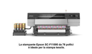 – SureColor SC-F10000, attualmente la stampante a sublimazione con la produttività più alta della gamma Epson, dotata di un nuovo svolgitore jumbo per bobine di carta da 300kg opzionale.