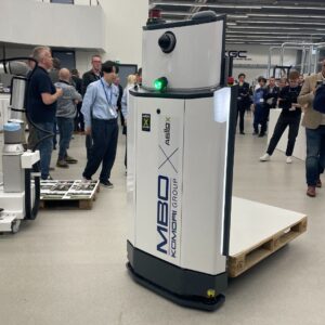 In dimostrazione anche la nuova Lithrone G-837P con inchiostri offset convenzionali alle prese con un lavoro di stampa convenzionale, il sistemi MBO K8 e CoboStack per il postpress e infine il robot per la movimentazione dei pallet.