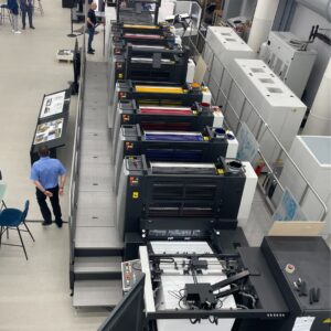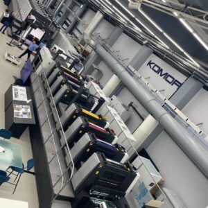 Il 17 aprile a poco più di un mese da drupa 2024, il Komori Graphic Center europeo di Utrecht, ha aperto le sue porte per un evento a cui hanno partecipato circa 300 persone tra aziende di stampa di tutta Europa, partner (Gew, Kodak, Technotrans Baldwin, Tresu) giornalisti per una full immersion tecnologica nelle novità che Komori presenterà a Dusseldorf. In dimostrazione live la macchina da stampa offset a doppia verniciatura Lithrone GX740+CC a sette colori con inchiostri UV che sarà protagonista dello stand di Komori a drupa con qualche ulteriore novità rispetto alla configurazione in cui l’abbiamo vista in azione. La macchina da stampa è dotata di elevati livelli di automazione, in linea con il claim Connected Automation di Komori, inclusa la funzione Smart Color come il cambio lastre automatico, un automatismo di cui Komori è da sempre pioniere. Durante la demo sono state stampate due diverse applicazioni di packaging per la produzione di astucci su cartoncino da 350 gr, per permettere ai partecipanti di toccare con mano la rapidità e l’efficienza del processo. Inoltre, Lithrone GX740 è estremamente flessibile: promette infatti di rivoluzionare la produzione di imballaggi con colori speciali. L’opzione Smart Color consente agli stampatori di raggiungere un ampio color gamut utilizzando l’arancione e il verde oltre a CMYK, senza la necessità di aggiungere colori speciali aumentando così la produttività e riducendo gli scarti. Il sistema raggiunge i 25 metri di lunghezza dall’alimentatore all’uscita, che nella configurazione presente a Utrecht era lunga per consentire un’asciugatura ottimale.