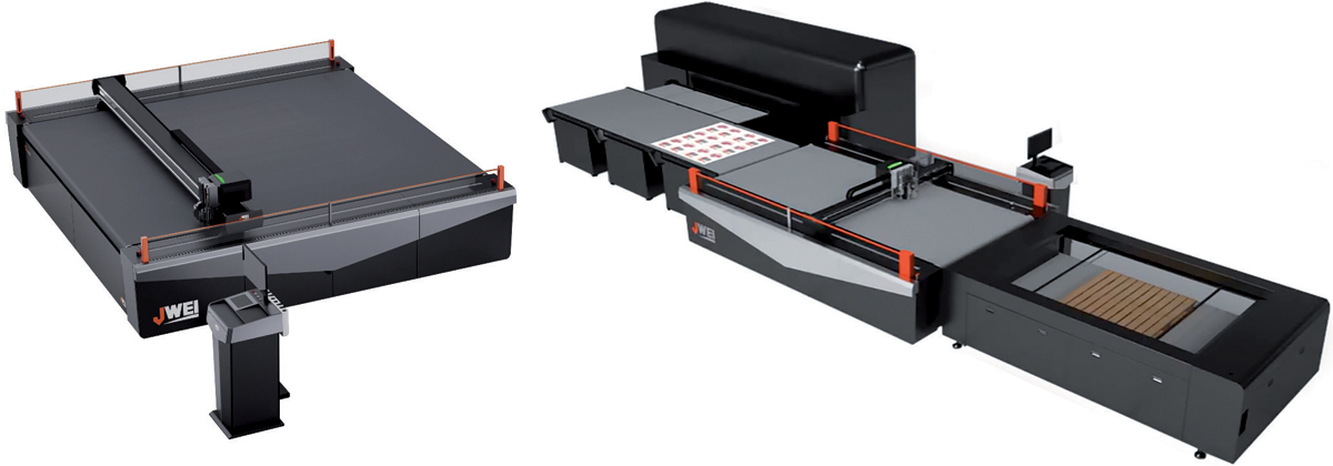 I tavoli da taglio Jwei completano il flusso produttivo con sistemi di taglio digitale ad alta precisione per materiali rigidi e flessibili. Dotati di cambio utensili automatico e ampia area di lavoro, permettono operazioni di taglio, fresatura, cordonatura e incisione su un’unica piattaforma. Periferiche di taglio con possibilità di automazione totale.