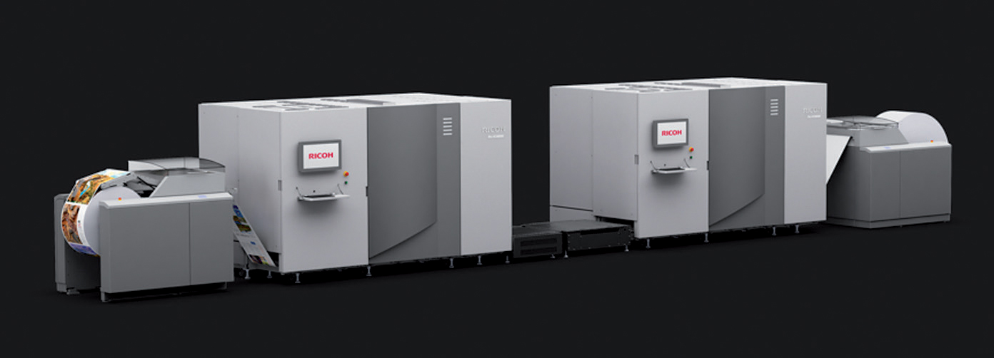 Ricoh Pro VC40000: piattaforma inkjet a mo­dulo continuo progettata per stampa transa­zionale, direct mail e produzione di libri. Offre elevata qualità e velocità di stampa fi­no a 180 m/min, con opzioni di inchiostri dye o pigmented e integrazione con software di auto­mazione dei workflow.