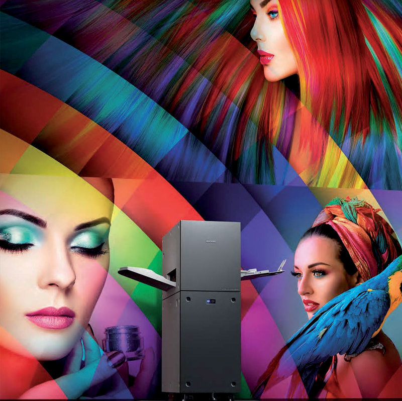 La tecnologia Ricoh Pro C7500 è dotata di una belt di trasferimento elastica, gestisce gramma­ture da 40 a 470 g/m² e lunghezze di stampa fi­no a 1.030 mm, ed è leader di settore grazie alla stazione quinto colore.