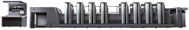 “Cavallo di battaglia” del marchio, con oltre 1500 installazioni a livello mondiale. Stampa supporti con spessori da 0,04 a 0,06 mm, è configurabile da 2 a 10 colori, con o senza voltura, con o senza verniciatore, nel formato 64 x 92 è dotata del massimo della tecnologia riscontrabile della nostra serie 10 (top di gamma).